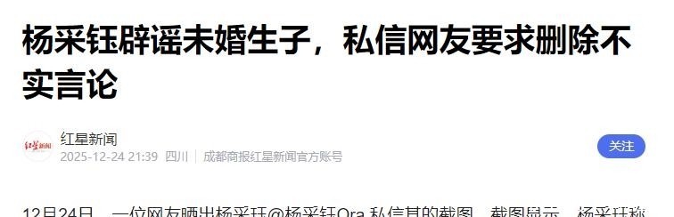 内容显示,杨采钰亲自联系该用户,要求删除关于其“未婚生育”的不实信息。
